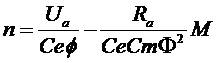 公式中n為電動(dòng)機(jī)轉(zhuǎn)速;Ua為電動(dòng)機(jī)電樞端電壓;Ce為反電勢(shì)常數(shù);φ為電動(dòng)機(jī)磁通量;Ra為電樞電阻;Cm為力矩常數(shù);M為電磁轉(zhuǎn)矩。