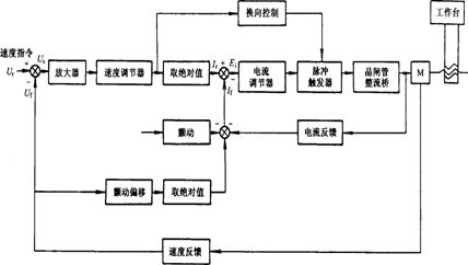 這種雙閉環(huán)調(diào)速系統(tǒng),由于在低速時(shí),整流器輸出電壓低,晶閘管的導(dǎo)通角小,整流器的輸出電壓和電流波形是斷續(xù)的,機(jī)械特性會(huì)有一段非線(xiàn)性,為此可在電樞回路中串接平波電抗器,以減小電流的脈動(dòng)。另外在伺服單元中也可以增加電壓變化率環(huán)和電流變化率環(huán),組成多閉環(huán)的系統(tǒng),也可使系統(tǒng)的靜特性和動(dòng)特性得到很大的改善。